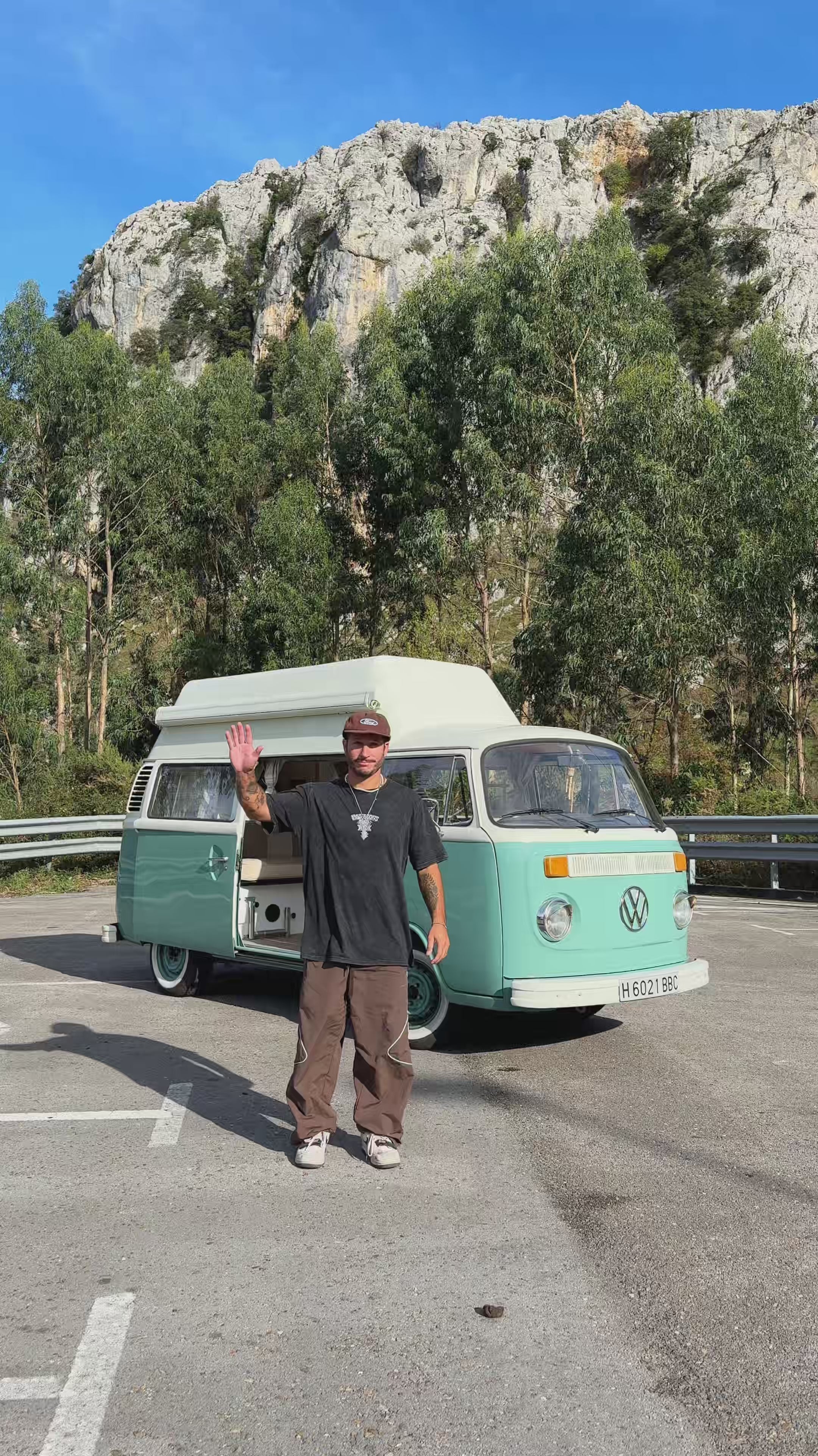 Esta T2 no es una más. Es la furgoneta camper de Ibai, quien siempre soñó con tener una Volkswagen clásica completamente camperizada. Tras sufrir un accidente con su anterior furgoneta, decidió empezar de cero y compró esta T2 de 1977 para restaurarla exactamente a su gusto… hasta dejarla espectacular.